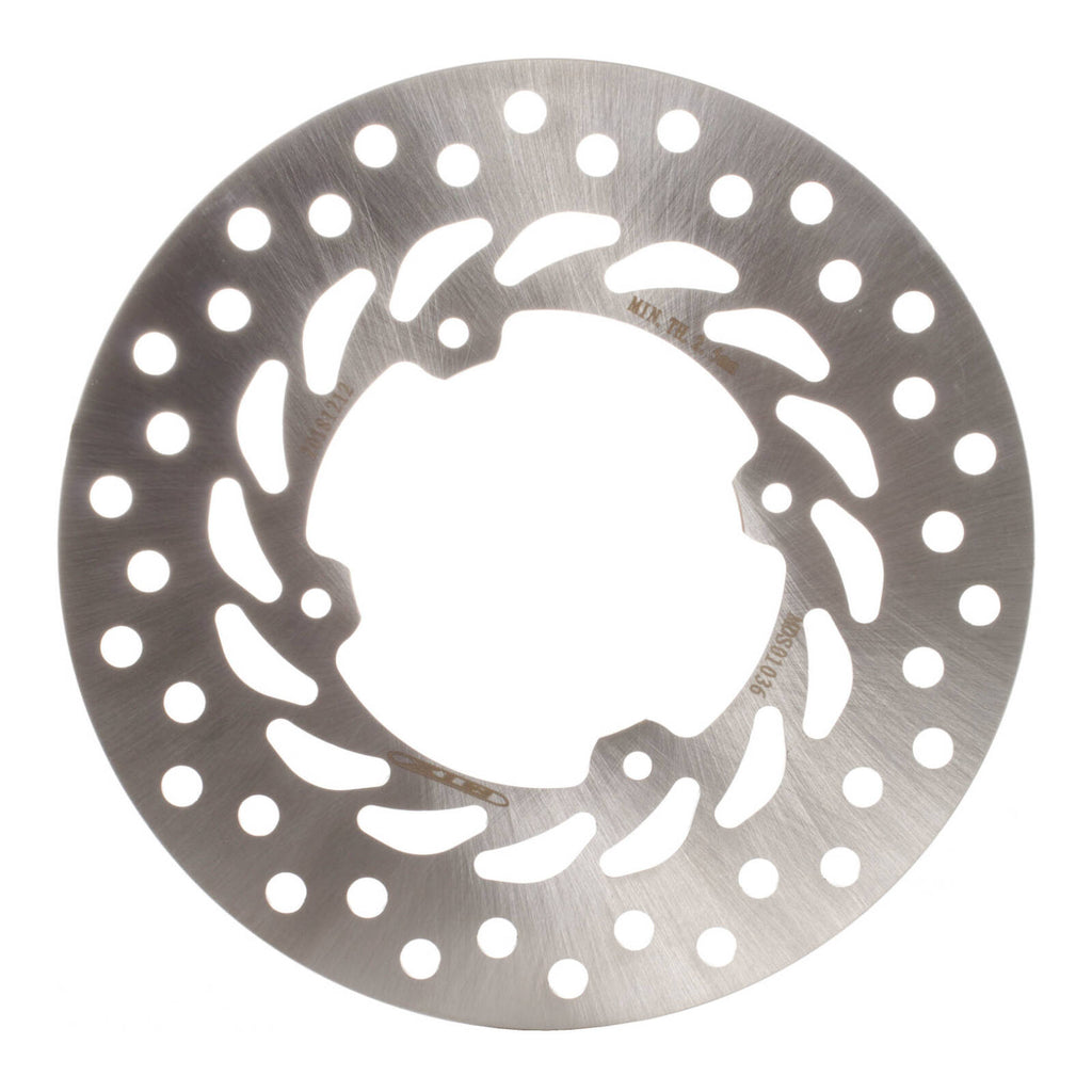 MTX solid discs are constructed using one complete segment of Japanese SUS 420 stainless steel, then heat-treated to HRC 36+-2. Lightening and drill hole patterns are as per OEM designs to improve braking performance and reduce the temperature of the disc.