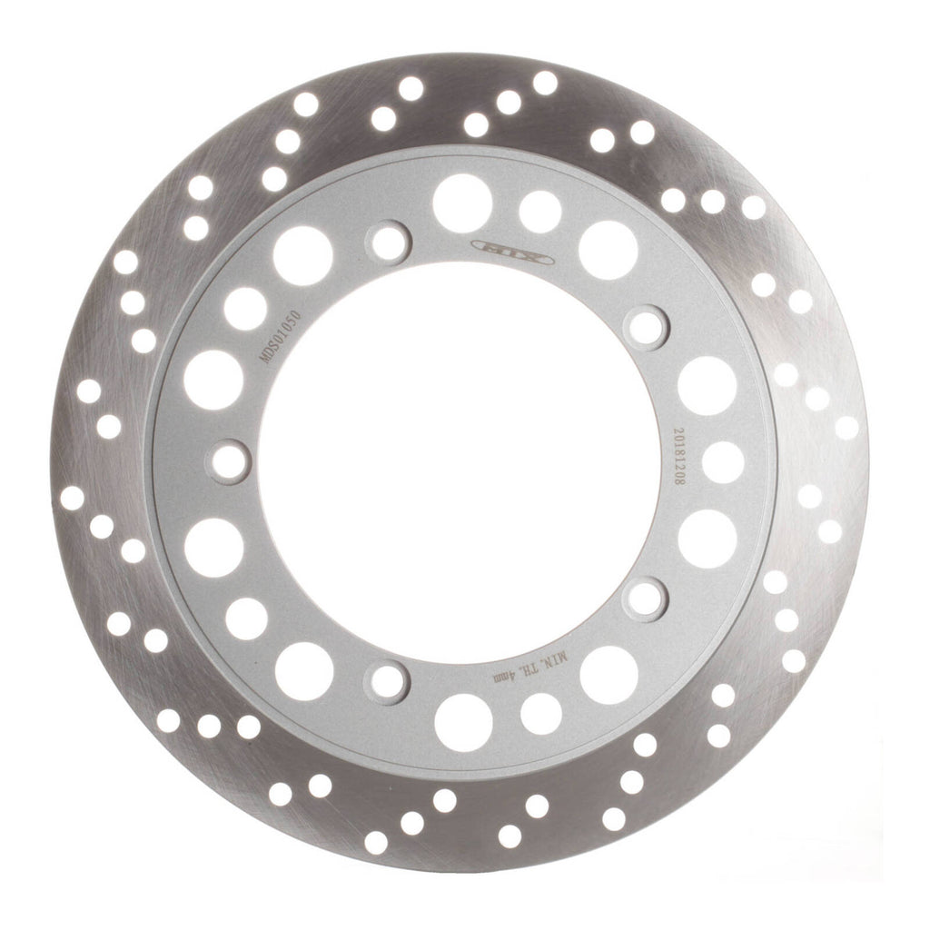 MTX solid discs are constructed using one complete segment of Japanese SUS 420 stainless steel, then heat-treated to HRC 36+-2. Lightening and drill hole patterns are as per OEM designs to improve braking performance and reduce the temperature of the disc.
