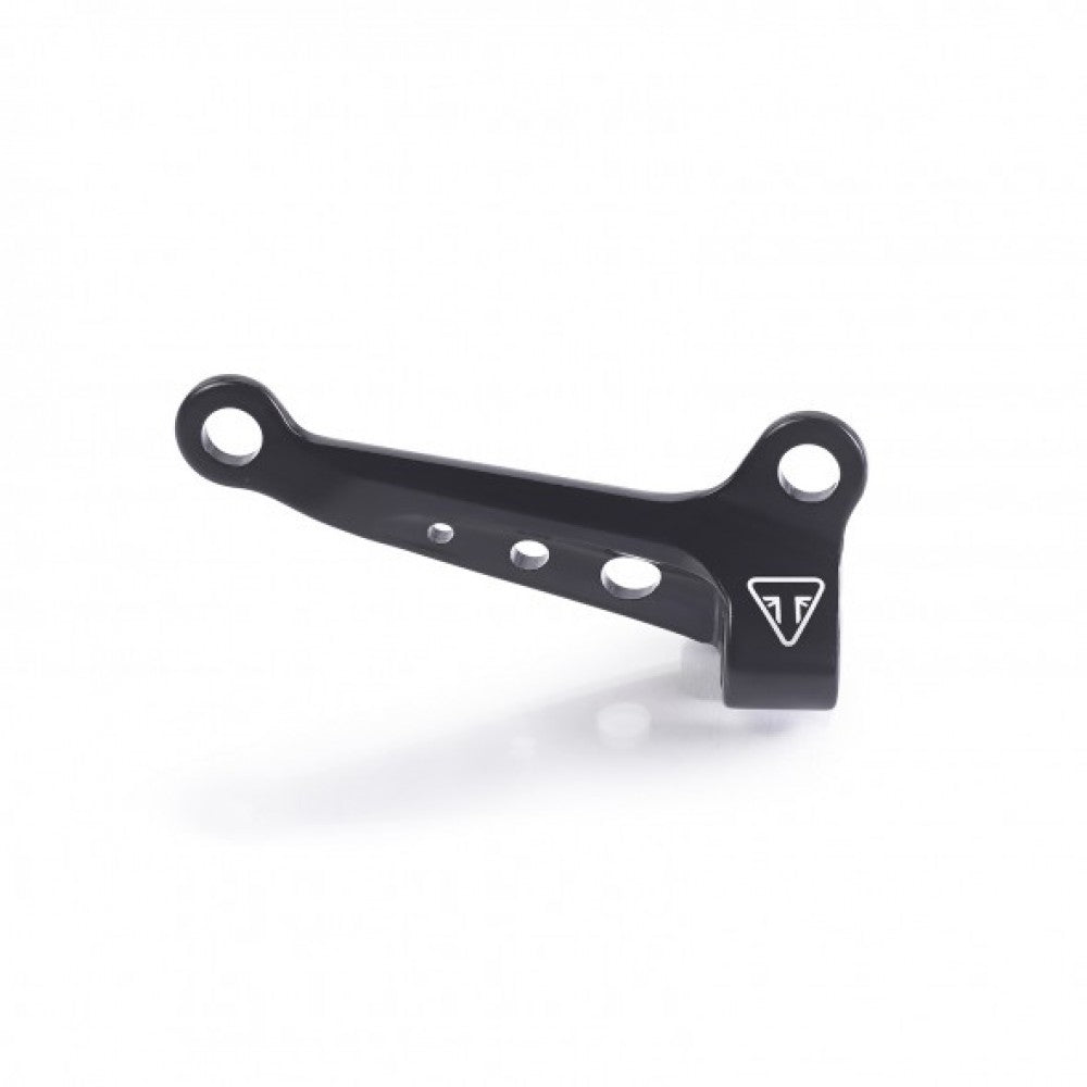 A CNC machined aluminium Clutch Cable Guide bracket designed to replace the original part. Featuring laser-etched Triumph logo branding detail and drilled body. Available in a Black, Clear Anodised and Gunmetal Finishes.