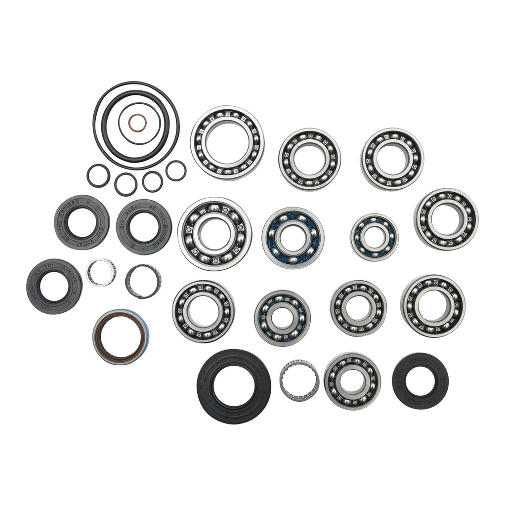 Comprehensive kit for transmission rebuild, includes bearings, seals, o-rings, and shims.