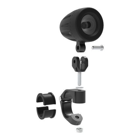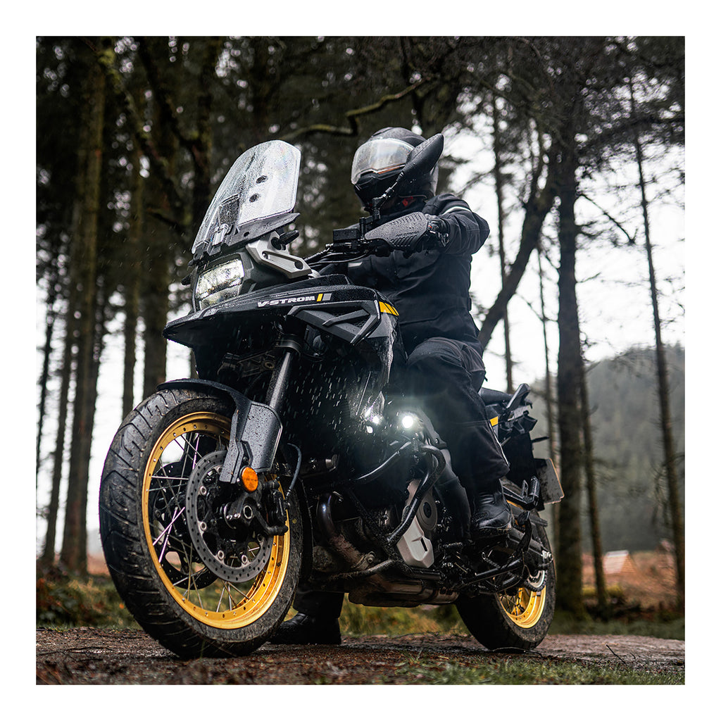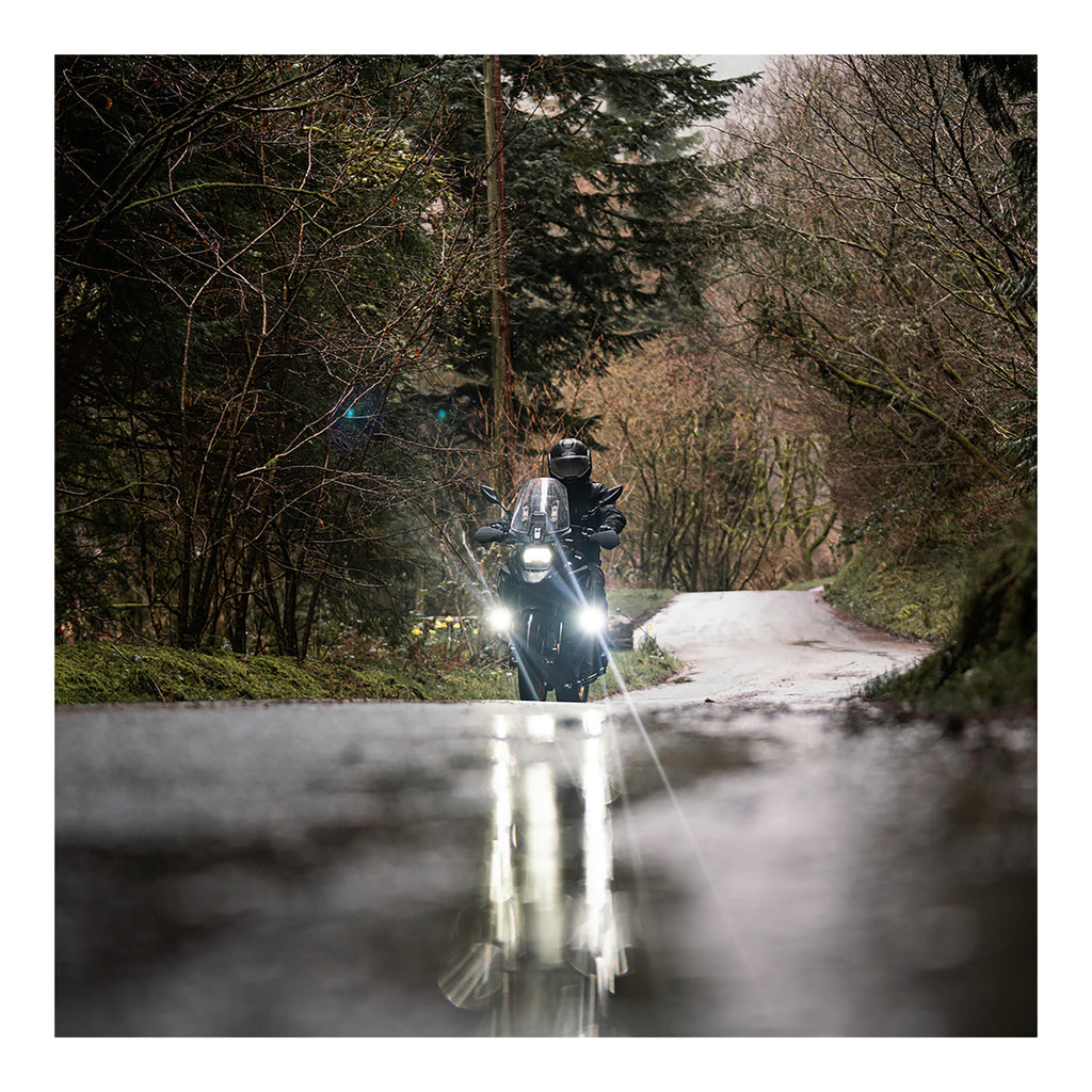 Oxford's Auxiliary Lights are a great aesthetic for adventure-style bikes. The kit comes with adjustable mounting brackets (suitable for bars from 22-28mm in diameter), a waterproof handlebar switch and a trigger wire for splicing into the motorcycle's flasher switch if this functionality is required.