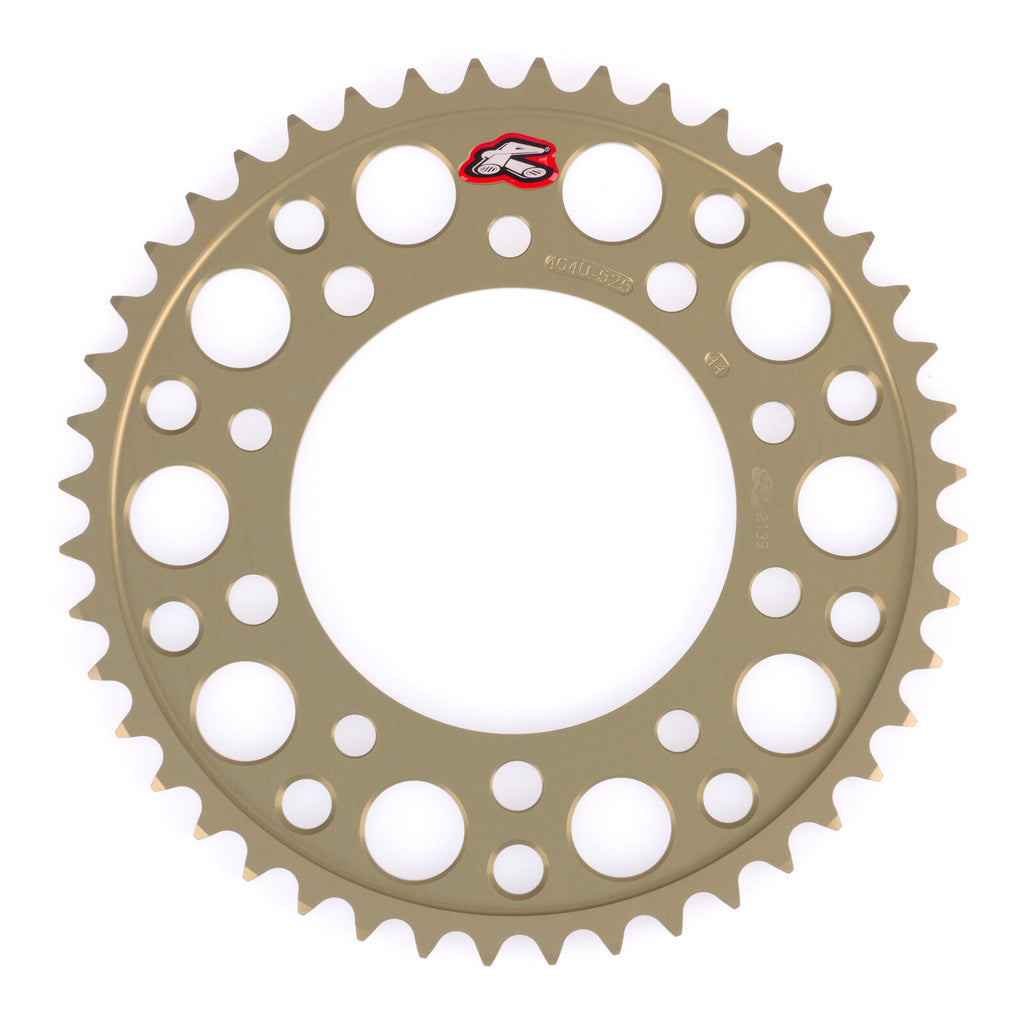 Renthal hard anodised rear sprockets are precision CNC manufactured to extremely high tolerances. The high strength is especially enhanced by using a 7075 T6 aluminium alloy coated in an ultra-hardwearing finish for extreme mileage. The rear sprockets computer-aided design gives the maximum reduction of unsprung weight at the rear wheel, to give maximum power transfer. The Renthal rear sprockets are 33% lighter than steel and the self-cleaning mud grooves prevent dirt buildup and help keep the sprocket clean.