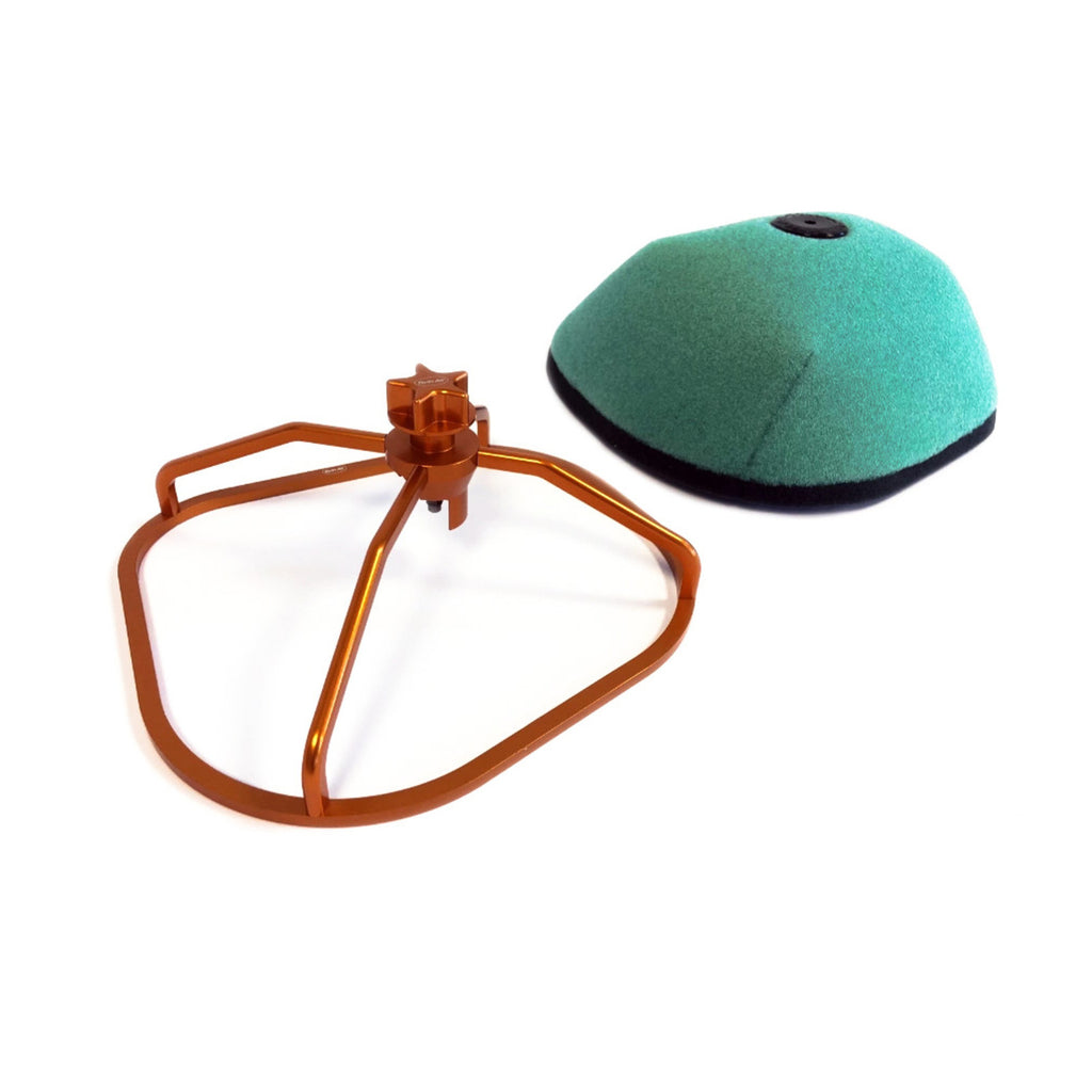 Twin Air Power Flow kit includes one filter and a rigid, lightweight, billet aluminium cage that provides a tight seal between the filter and airbox.