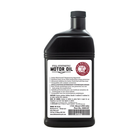 Includes 1 Quart of Indian Motorcycle Full Synthetic SAE 15W-60 Motor Oil.