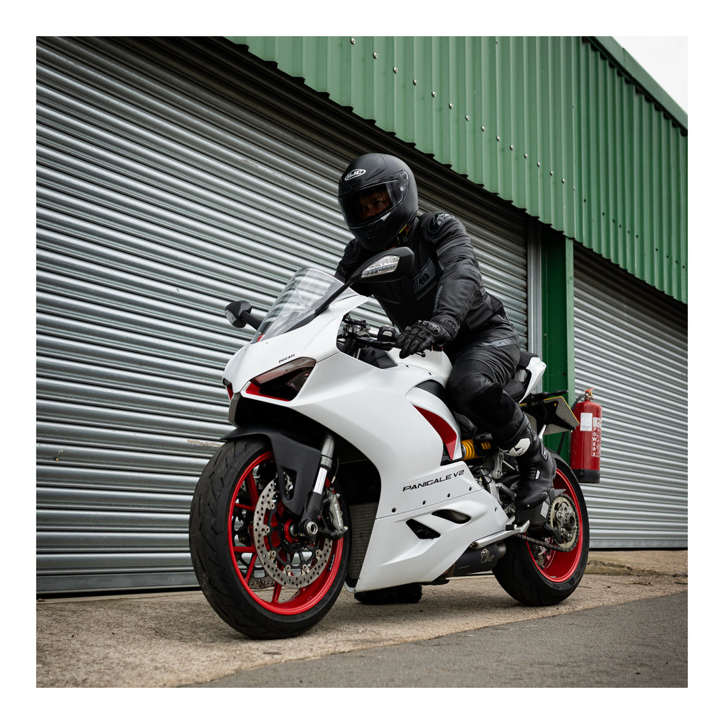 High-performance leather is complemented by CE level 1 protectors at the elbows, shoulders, knees and hips which also feature extended surface area coverage.