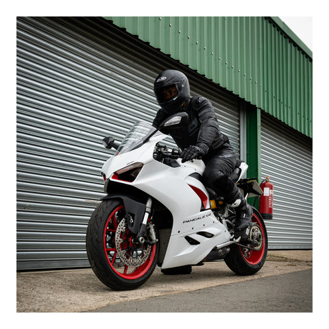 The Cypher 1.0 leather jacket and pant are designed for riders who want to make a statement, with its sharp styling, asymmetric print and eye-catching TPU shoulder sliders.