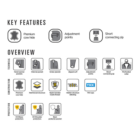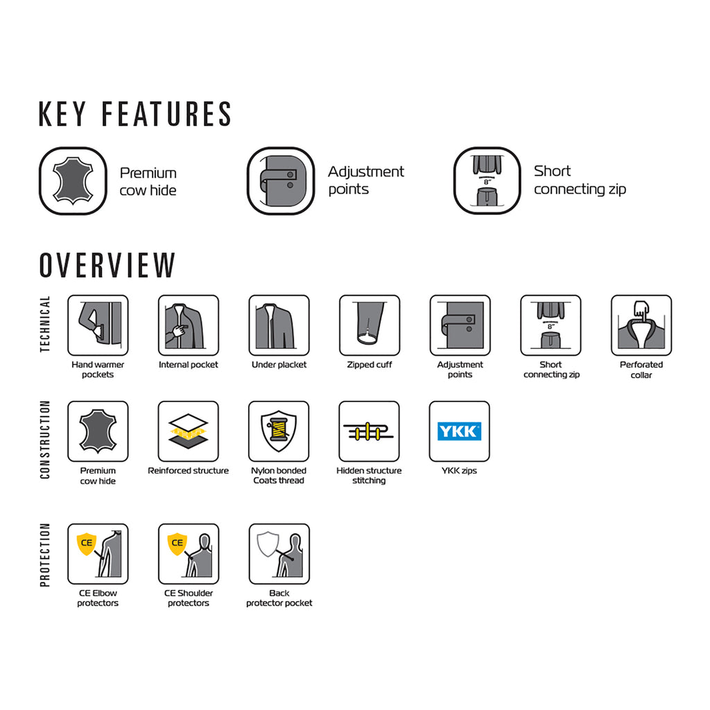 The Bladon leather jacket mixes contemporary style with a slice of café racer chic. Using cow leather, it is lightweight, supple and sporty and this hard-wearing riding jacket is complete with CE- approved shoulder and elbow armour, triple stitching to the back of the arms for added strength and 4 pockets on the front. The debossed Oxford logo finishes off a great-looking jacket.