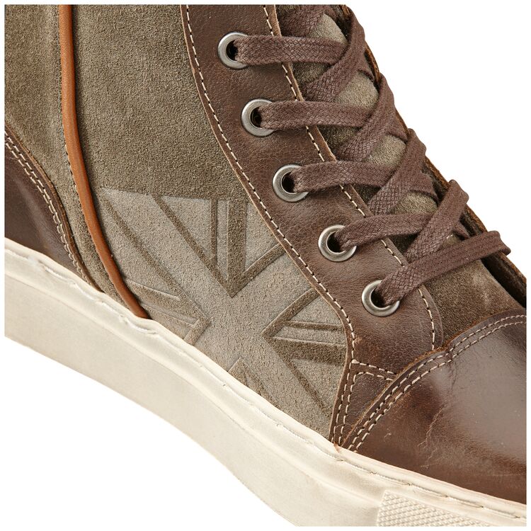 Whether you call them riding shoes, boots or "trainers", their style is undeniably unique. The full height Foxton Riding Shoes from Triumph feature contrasting panels of leather and suede, an impact absorbing layer of D3O in the sole and embossed Triumph branding. Waxed cotton laces unite the many, many eyelets. A leather lace guard keeps those long laces in check.