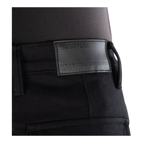 - Oxford branding label at back waist and coin pocket.